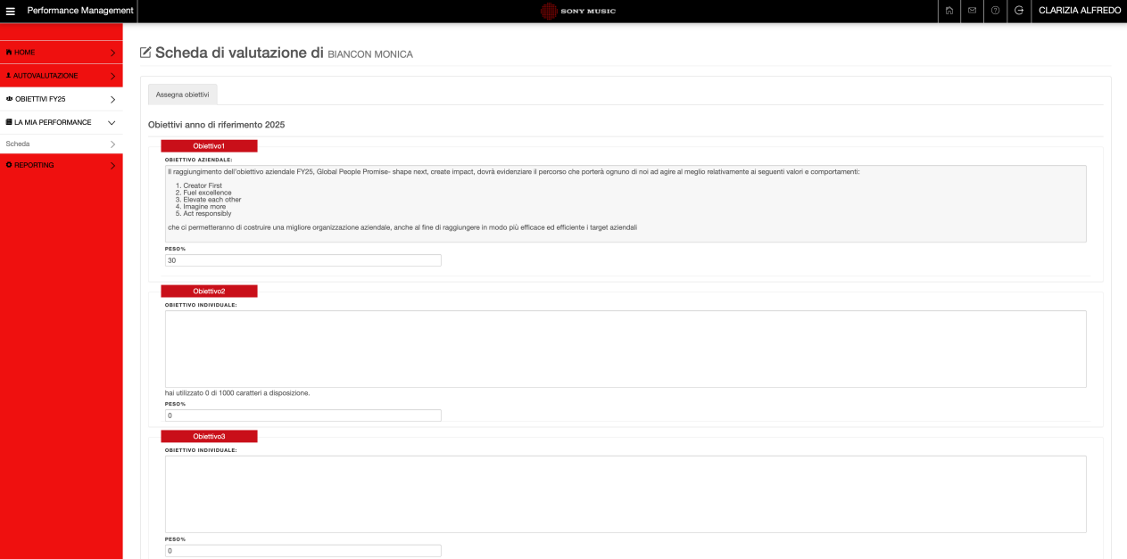 Performance Management System – L’applicativo si occupa di dare la possibilità ai dipendenti, di inserire e registrare la propria autovalutazione e successivamente la valutazione da parte del proprio capo.